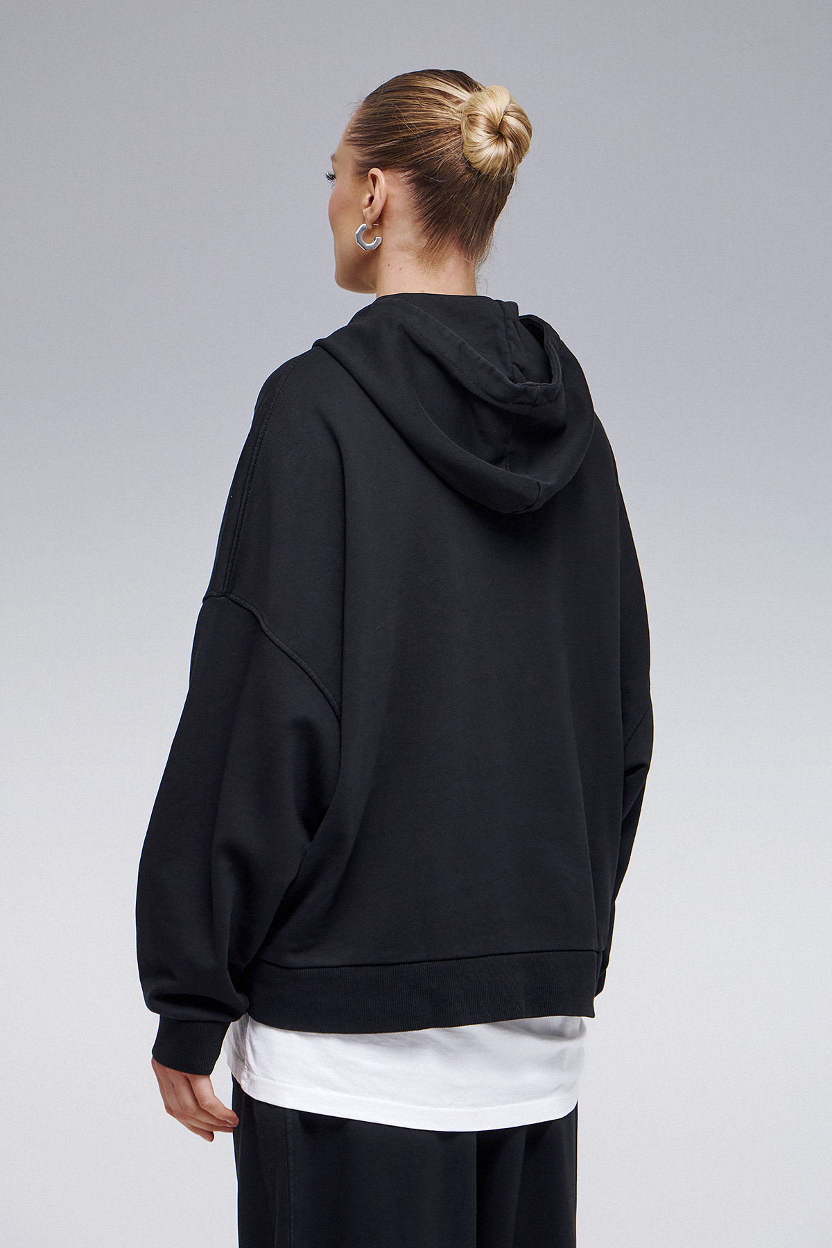 Oversized φούτερ χωρίς χνούδι με κουκούλα από 100% οργανικό βαμβάκι, με απαλή υφή και δομημένη εφαρμογή.
