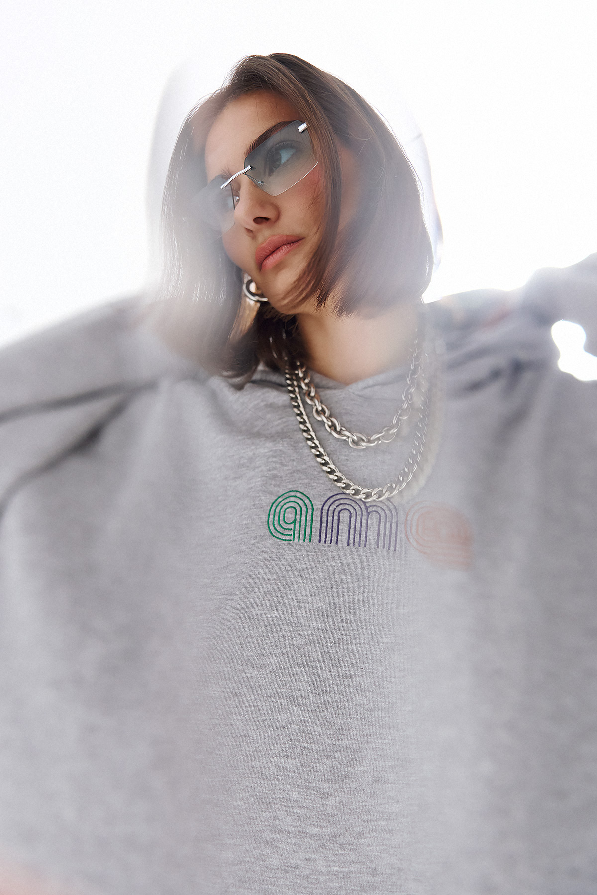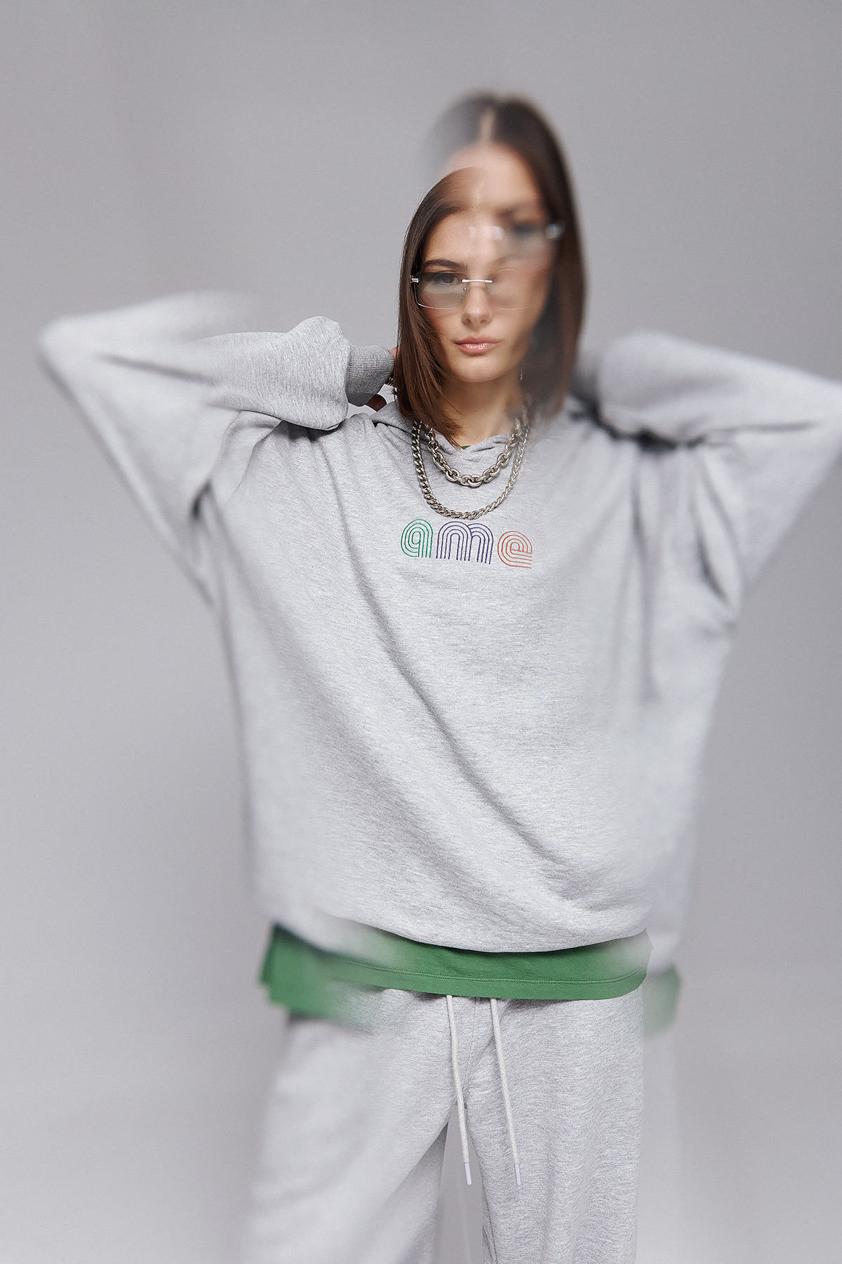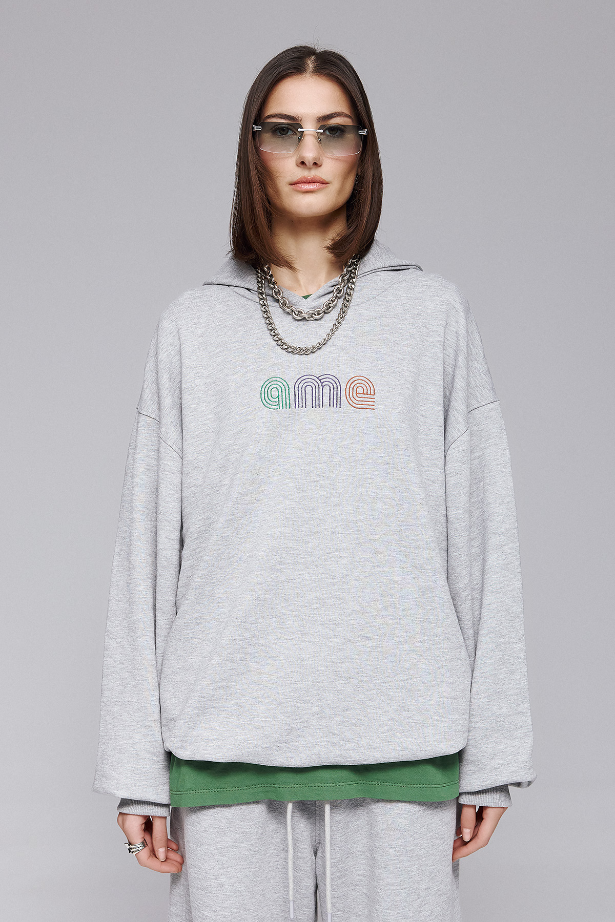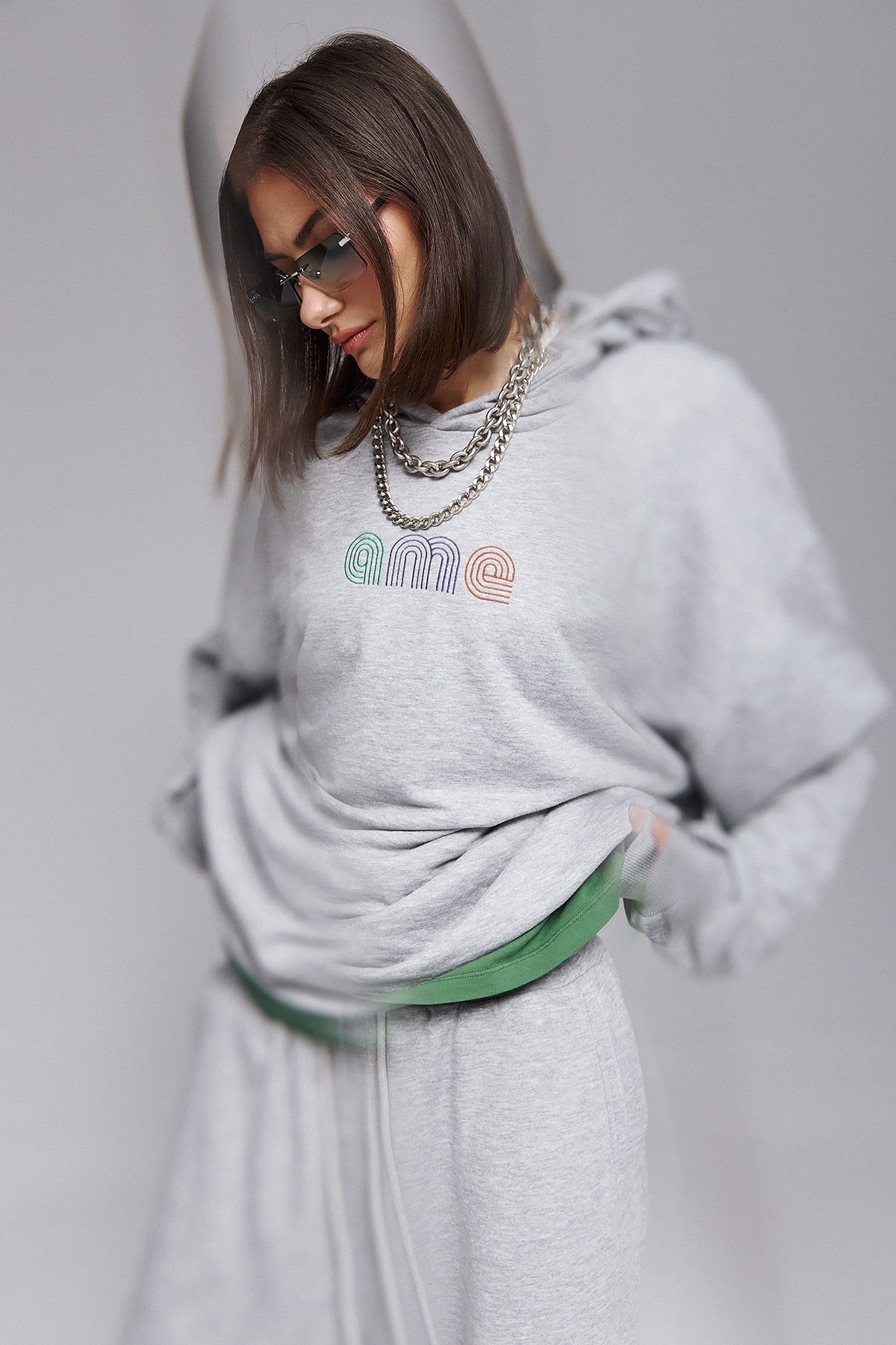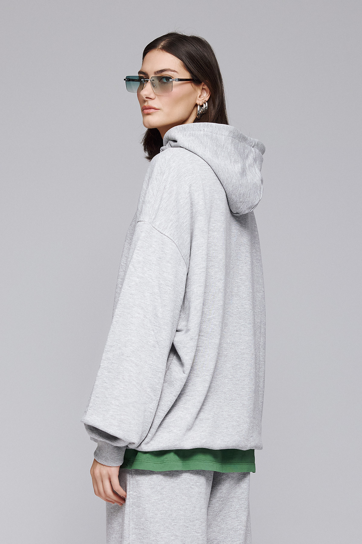 Γκρι oversized φούτερ με κουκούλα και κέντημα από 100% βαμβάκι, με απαλή υφή και δομημένη εφαρμογή.