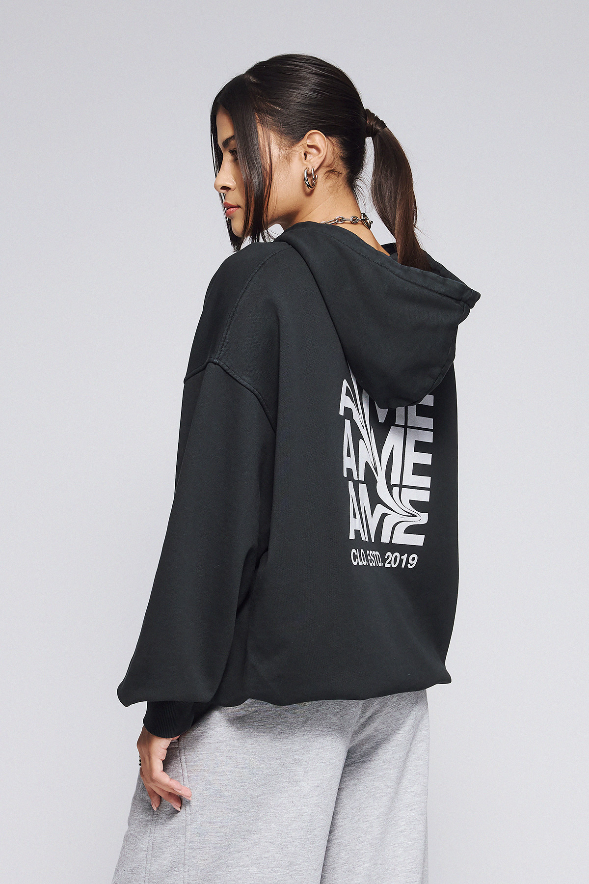 Μαύρο oversized φούτερ με κουκούλα χωρίς χνούδι με 100% οργανικό βαμβάκι, με απαλή υφή και δομημένη εφαρμογή.