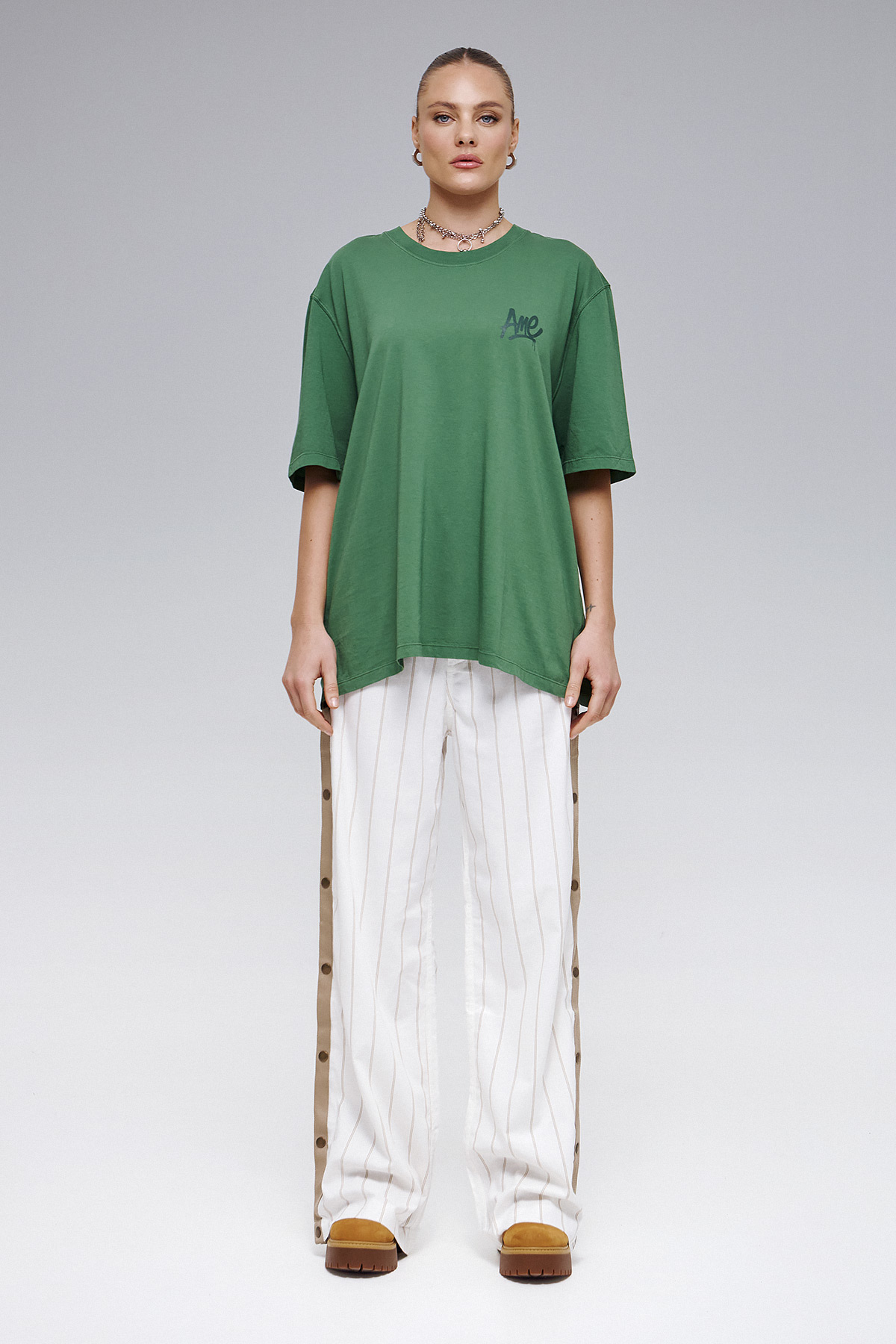 Ανάλαφρο , δροσερό και απόλυτα statement . To λινό παντελόνι AME συνδυάζει την φυσική υφή του λινού με urban αισθητική , χάρη στην κάθετη ρίγα και την λεπτομέρεια με τα ανοιγόμενα μεταλλικά κουμπιά στο πλάι σε όλο το μήκος .