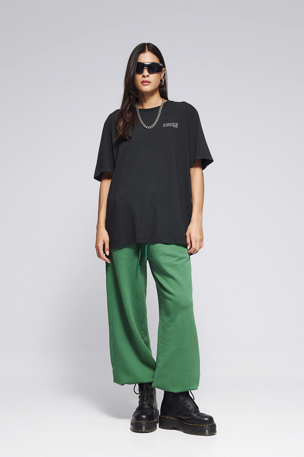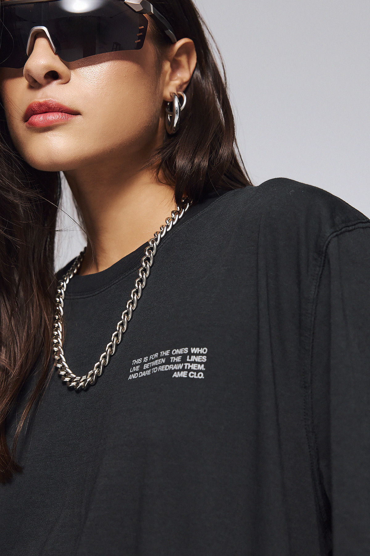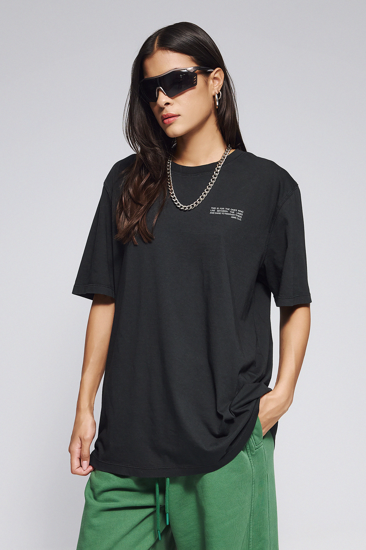 Μαύρο oversized T-shirt από 100% οργανικό βαμβάκι με απαλή υφή και καθαρή γραμμή.
